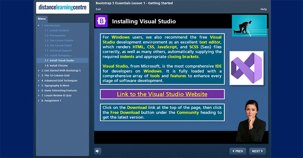 For the Bootstrap 5 novice, the course is self-paced and highly practical, teaching you the fundamental concepts and features through hands-on exercises and assignments and, if you have previous Bootstrap experience, we also investigate and try out many advanced features.