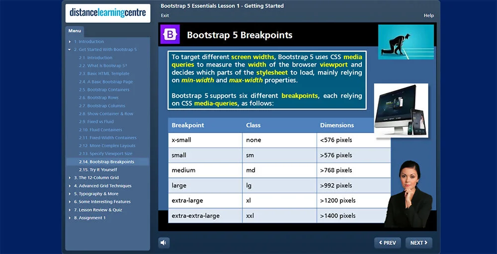 The Bootstrap 5 Essentials Online Course is designed for anyone wanting to become proficient in using Bootstrap 5’s easy-to-use web page development tools. In the course you will build a wide range of responsive web pages that will look equally sensational when viewed on smartphones, tablets, laptops, and widescreen monitors.